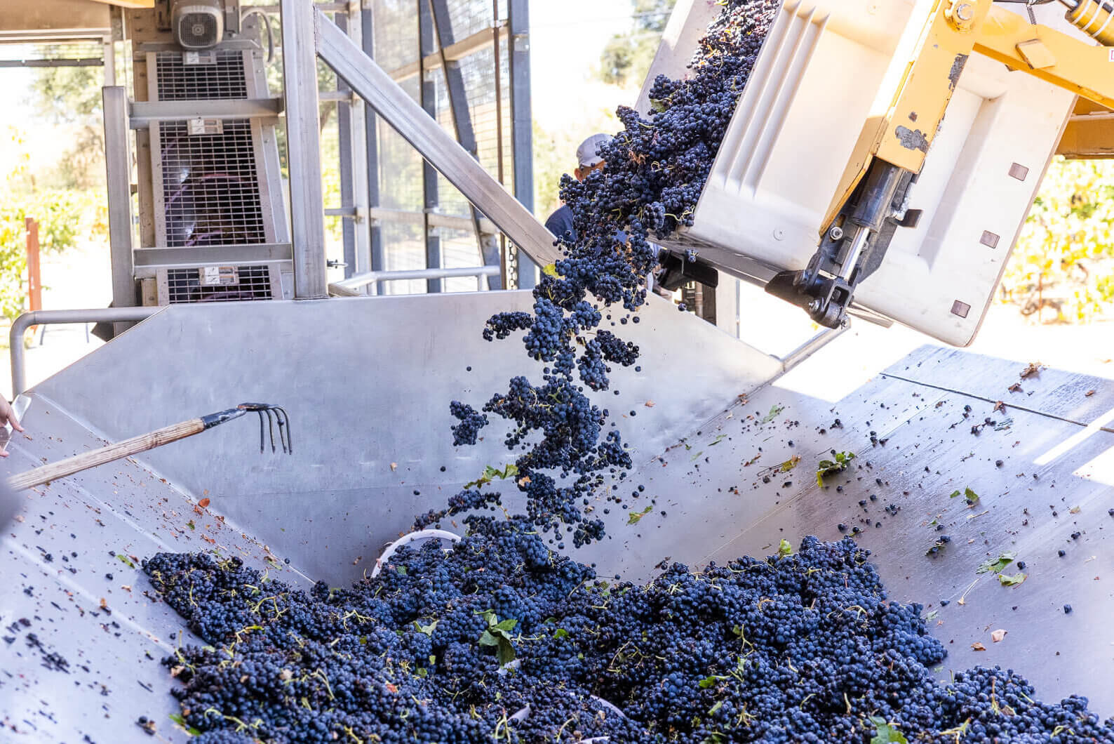 Further north, at our Estate Lytton Springs Vineyard, counoise and cinsaut for the rosé were ready first. The way we make our rosé is a bit different than how I’ve seen other wineries make rosé. Instead of making the rosé from one lot of grapes, we do several picks in order of ripeness to use the natural acidity present in the grapes at lower brix. The counoise and cinsaut were picked around 20 brix, which is relatively low in sugar content, and would give a very low finished alcohol. This pick is our bright acidity component. The next pick was zinfandel at 22 brix to capture the stone fruit components that zinfandel expresses at this level of ripeness. This pick also contributes natural acidity to the final wine. We allow the grenache to get the ripest, about 23 brix. This pattern of picking makes a wine layered with expressive fruit, mineral and savory notes from varying ripeness levels.