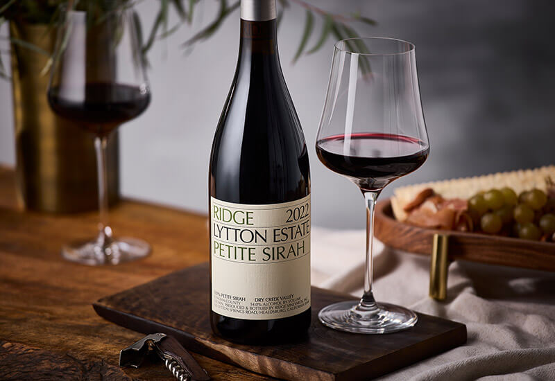 Ridge produced its first petite sirah in 1970 from Butow Ranch, the first organic vineyard in Mendocino County. From 1971 to 2016 (when the vineyard was replanted to cabernet sauvignon), we also produced petite sirah from the famed York Creek Vineyard in Napa Valley. Small quantities of petite sirah were also planted at our Lytton Estate in Dry Creek Valley but were always included in our Lytton Springs bottlings. Discovering the potential to grow world-class petite sirah on the western half of our Lytton Estate, where the clay soils help to develop color and tannin, we produced our first 100% varietal bottling of Lytton Estate Petite Sirah in 2002, and have produced a limited bottling ever since.